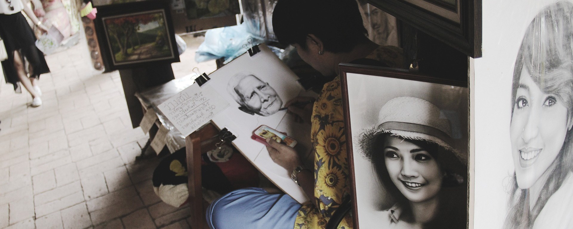 Ahora cuando pasamos tranquilos observando a estos hombres y mujeres que en la calle se dedican a dibujar el rostro de los transeúntes que tienen tiempo para ver luego trazados su rostro y manos en un papel, ya no en blanco, gracias al poder del carboncillo y el lápiz. Ahora quisiera sentarme frente a uno de ellos y decirle que quiero, quizá pueda, en su conocimiento encontrar la manera de sacar de mí este recuerdo tuyo al que le hablo, y ponerlo en papel para que también a diario pueda, en vez de verte dentro, verte afuera para capturarte nuevamente.